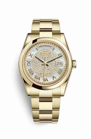 Swiss Replica Rolex Day-Date 36 118208 White mother-of-pearl diamond paved Dial Watch - Click Image to Close
