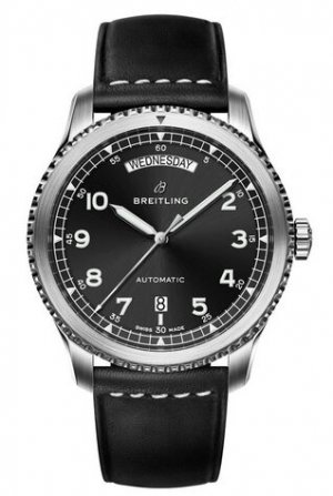 Swiss Replica Breitling Navitimer 8 Day & Date Black Dial Leather Strap A45330101B1X1
